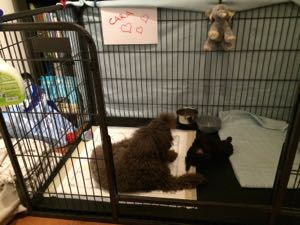 Carapikkuinen kasvaa ja Neve jaksaa sitkeästi leikkiä sen kanssa. Tumman koiran kuvaaminen on haasteellista, Neven edessä oleva musta täplä on Cara :)